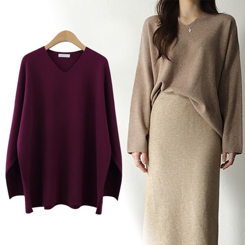 제니트 여성 루즈핏 브이넥 니트 오버핏 빅사이즈니트 예쁜 니트티 가을 봄 , FREE / 핑크